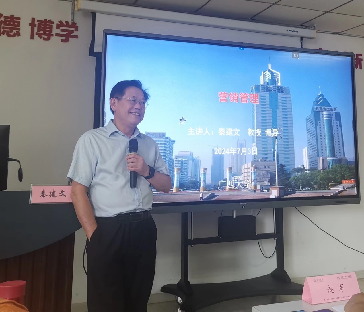 上午秦建文教授就《营销管理》展开专题讲座。秦建文教授从基本概念出发,细致分析了营销环境,强调市场定位(STP策略)的重要性。随后,教授阐述了多元化营销策略的应用,并着重讨论了客户资源管理的艺术。整场讲座内容丰富,见解独到,提供了宝贵的营销管理知识。