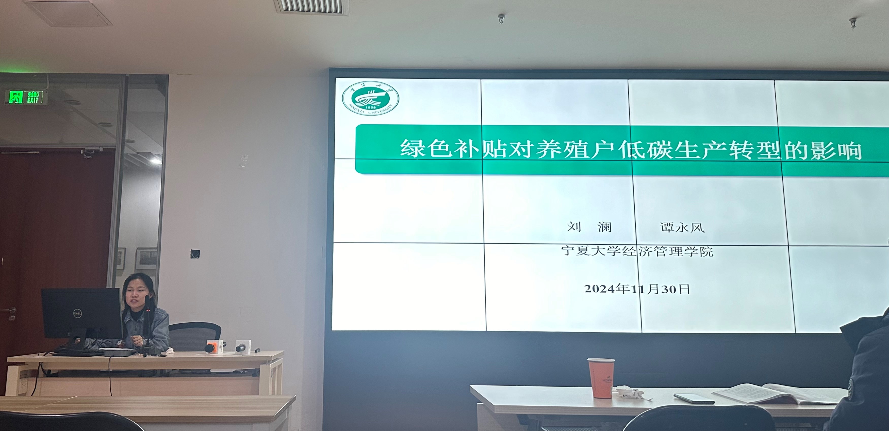 研究生刘澜报告论文题为《绿色补贴对养殖户低碳生产转型的影响》。论文基于四川和山东两省498份生猪养殖户微观调查数据,采用内生转换回归模型,通过构建反事实框架实证分析绿色补贴对养殖户低碳生产转型的影响效应与机制。研究发现:第一,绿色补贴获得能够促进养殖户低碳生产转型。第二,绿色补贴对养殖户低碳生产转型的影响存在群组性差异,表现为绿色补贴对风险偏好程度较高、养殖规模较大以及受环境规制水平约束较强的养殖户,其低碳生产转型的促进效果更为明显。第三,绿色补贴对养殖户低碳生产转型的促进作用依次源于绿色补贴带来的财富效应、预期效应和规模效应。