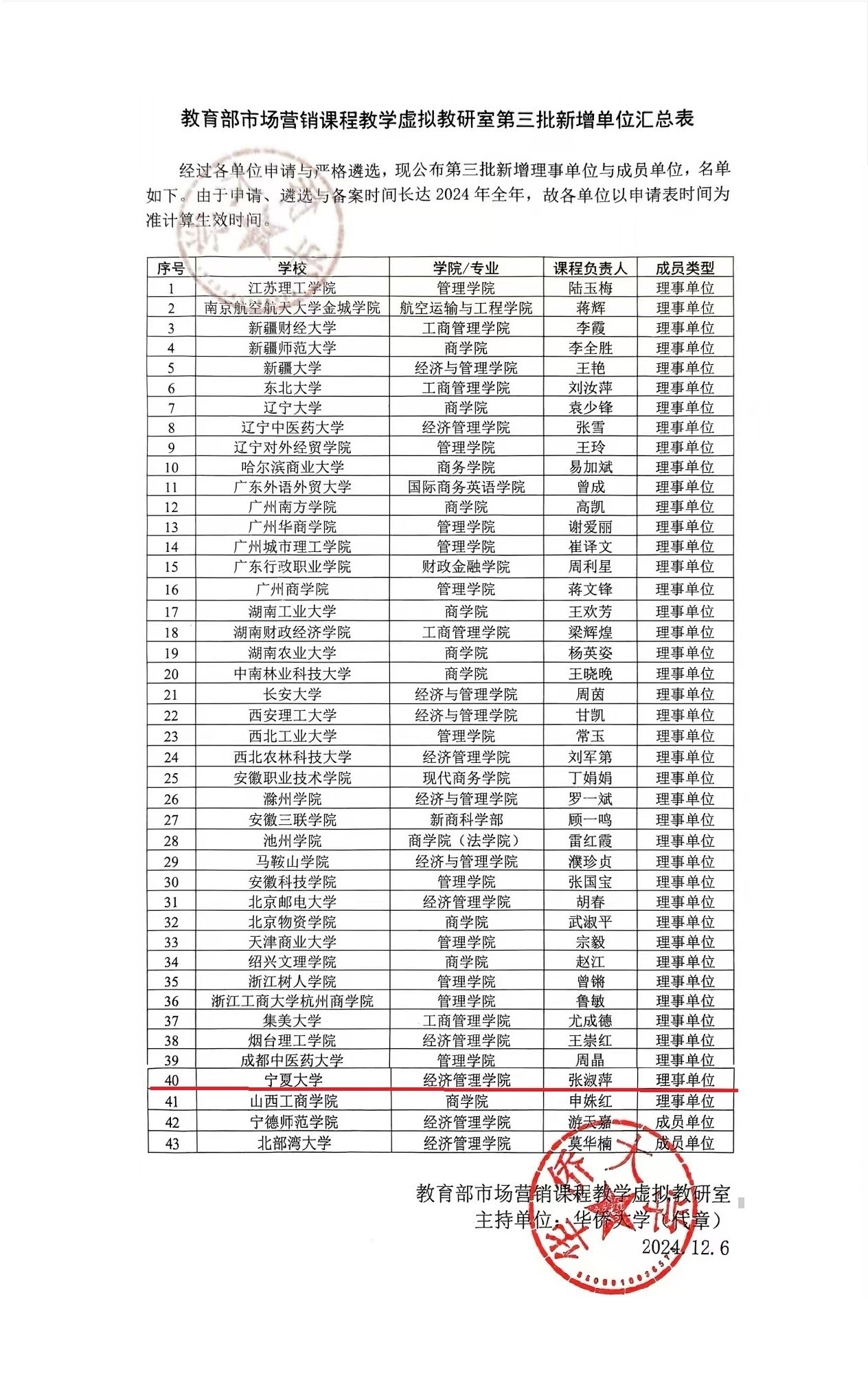 经管学院市场营销专业经过遴选成为理事单位加入了教育部市场营销课程教学虚拟教研室。
