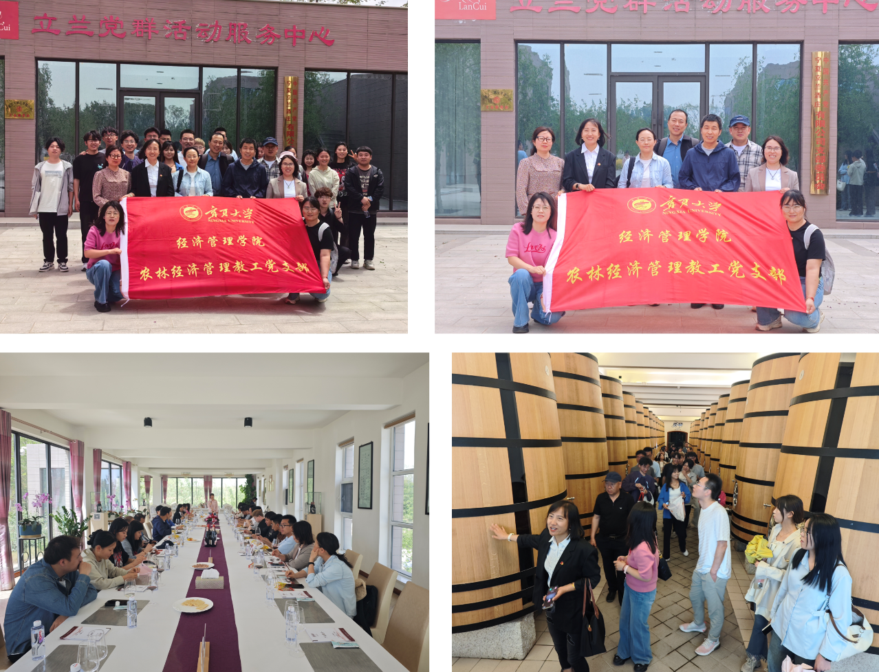 农林经济管理教工党支部联合农学院农业资源与环境保护系教工党支部,开展“党建+业务”支部结对共建主题党日活动暨《农村发展与治理》研究生课堂实践活动。来自两学院的教工党员及农林经济管理专业研究生、农村发展研究生共30余人,先后走进银川百瑞源殷红子熟枸杞庄园、闽宁镇立兰酒庄,以“行走课堂”为载体,在田野实践中深化党建与专业融合,书写“党建红”引领“产业绿”的育人新篇,实地走访宁夏特色产业一线,以实际行动践行教育强国与乡村振兴使命。
