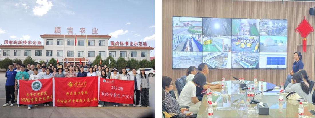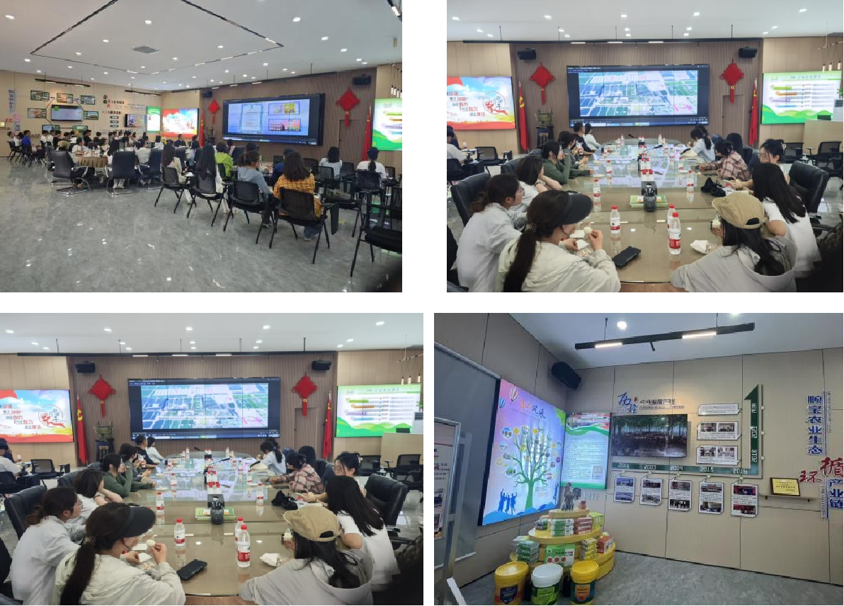 第四站,师生们来到了宁夏顺宝现代农业股份有限公司。该公司创立于2001年,是一家以商品蛋鸡养殖为主导的国家高新技术企业,遵循“环境安全则养殖安全,原料优质则产品优质,上游可控则效益可控”的原则与理念,率先在行业内建立了从“玉米种植采购——饲料自配加工——鸡粪肥料化利用”全产业链模式,斩获多项荣誉且通过多类管理体系认证。师生们通过观看视频、聆听讲解以及品尝鸡蛋,目睹了公司从产业链实现了价值链的提档升级的全过程,为同类行业提供了现代农业的智能发展样板。