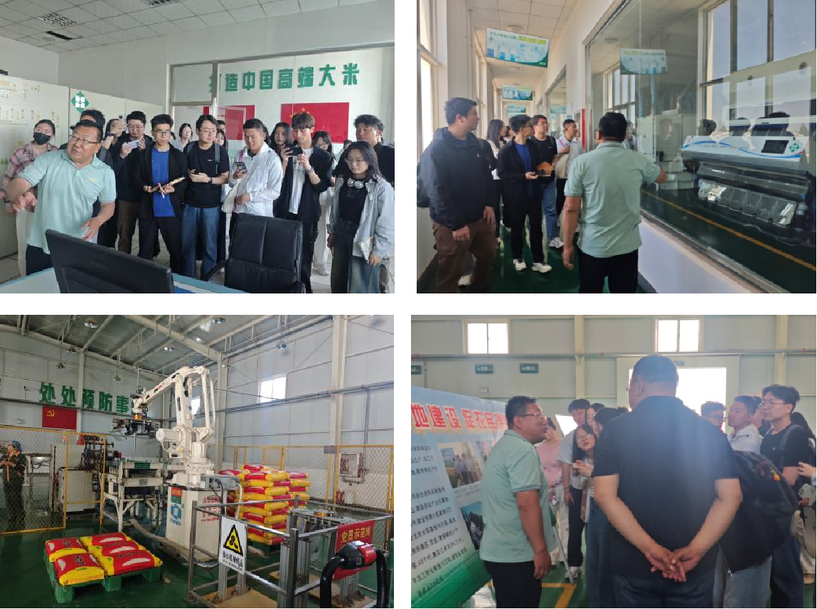 第一站,师生们来到了宁夏塞外香食品有限公司。宁夏塞外香食品有限公司是一家集优质粮食种植、研发、加工、销售为一体的国家农业产业化重点龙头企业。源于对优质食品产业链的品质坚持,塞外香开创了“企业+科研+基地+农户”的经营模式,并始终将科技创新联盟作为品牌提升的动力源泉。师生们在公司负责人的带领下参观了塞外香品牌的各类产品、自动化大米加工生产线以及质检室。通过观看影音视频、参观生产车间、品尝营养米汁等活动,零距离感悟“从田间到餐桌”科技赋能农业升级每一个环节所凝聚的农人智慧。