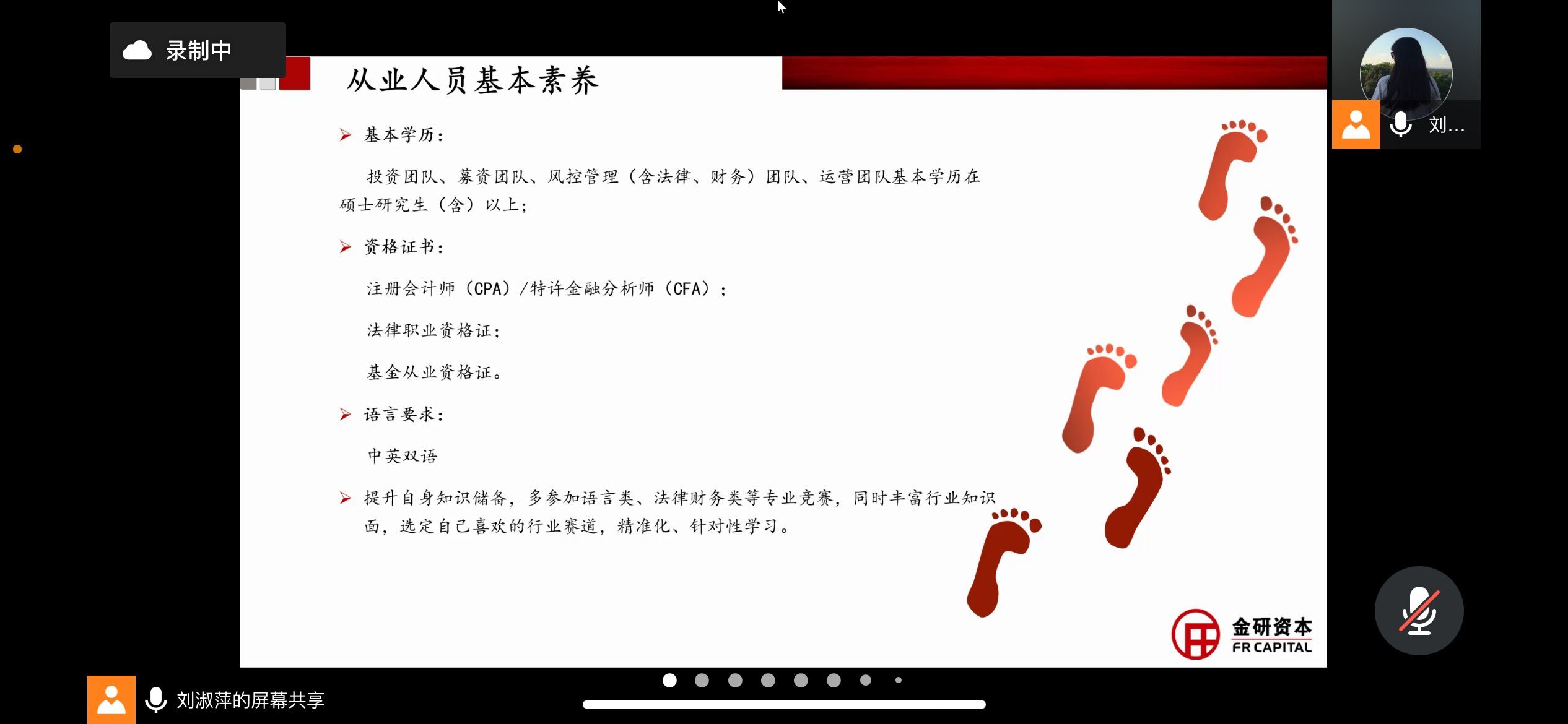 于线上顺利举行了私募股权基金法律风险管控讲座。金研资本风控主管、中国人民大学金融学硕士、英国爱丁堡大学法学硕士潘潇,刘淑萍老师,2021级经济学(金融方向)全体本科生参加此次会议。刘淑萍主持会议。