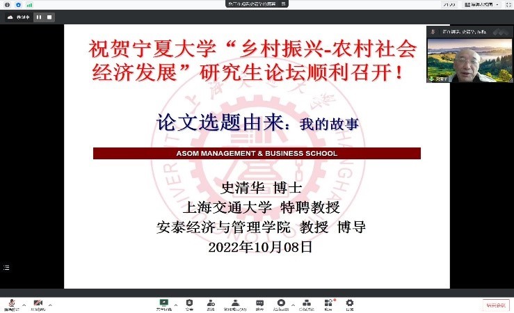 农林经济管理系主办的“塞上农经(第6期)”“第一届乡村振兴-农村经济社会发展研究生论坛”顺利召开!为使研究生及时了解农业经济领域前沿,提升其学术研究能力,特邀上海交通大学安泰经济与管理学院特聘教授史清华教授、南京农业大学亚新体育