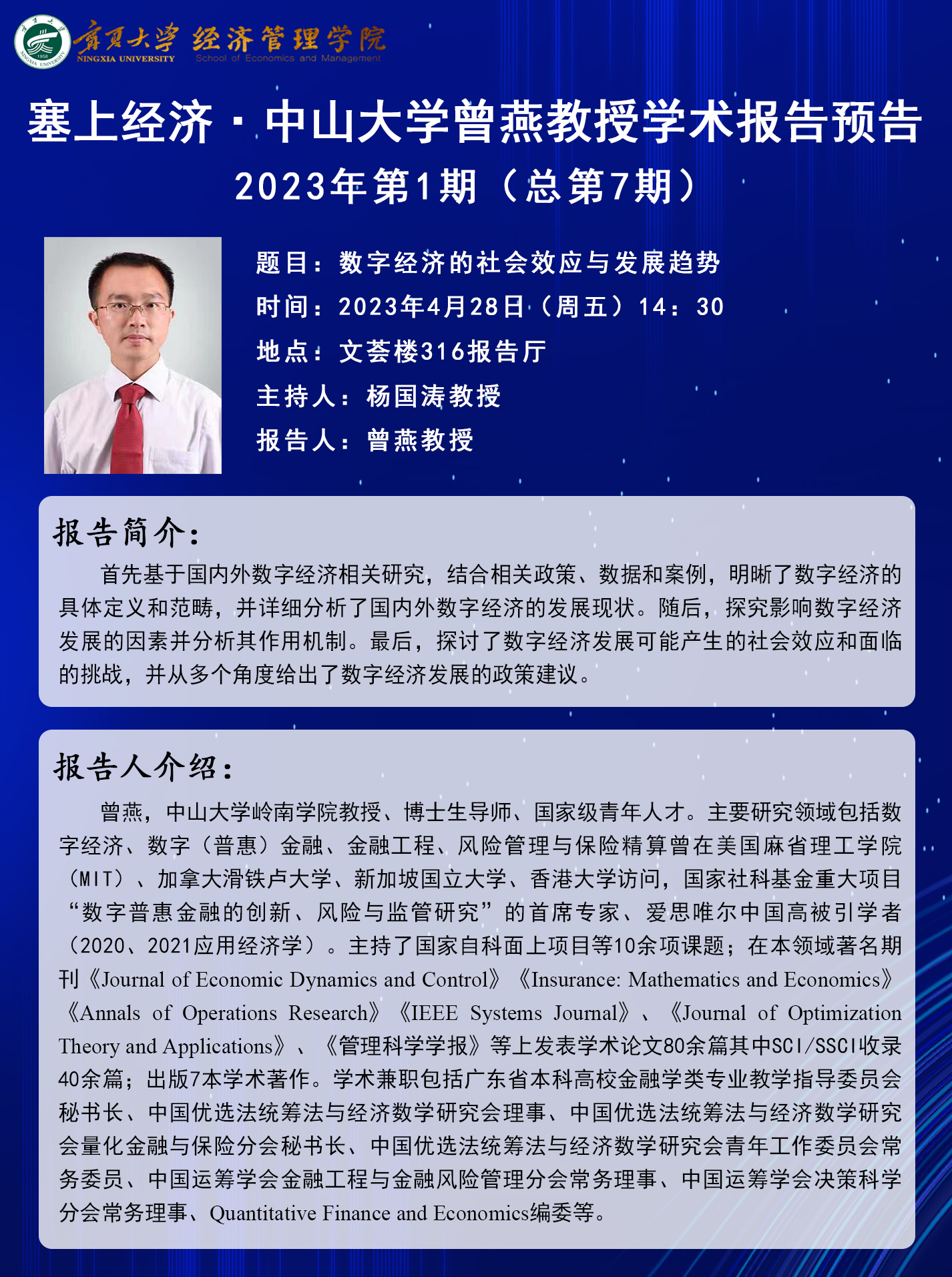 塞上经济·中山大学曾燕教授学术报告预告