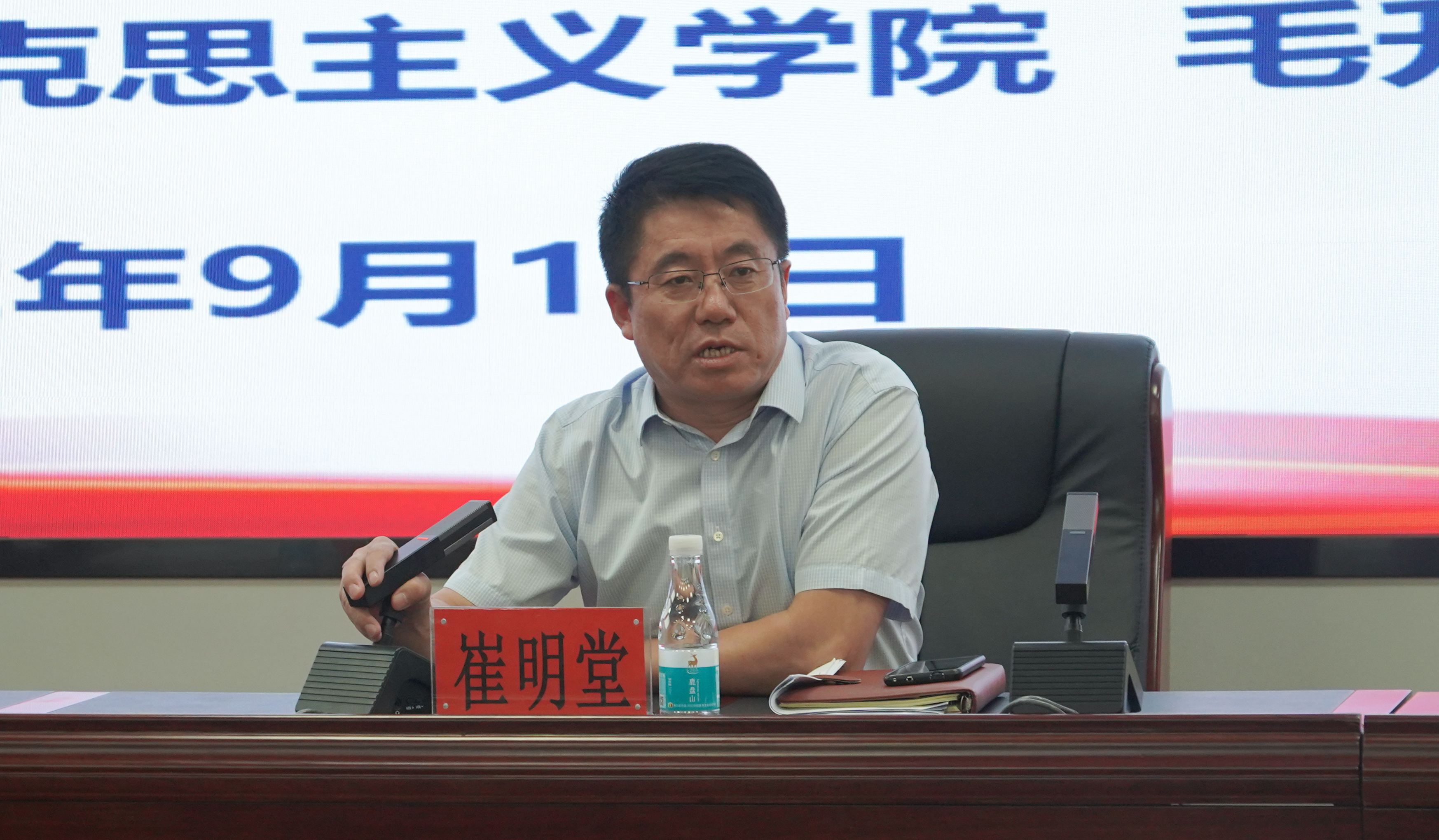 马克思主义学院毛升老师主讲,学院全体教师和部分学生代表参加了此次宣讲会,会议由学院党委书记崔明堂主持。