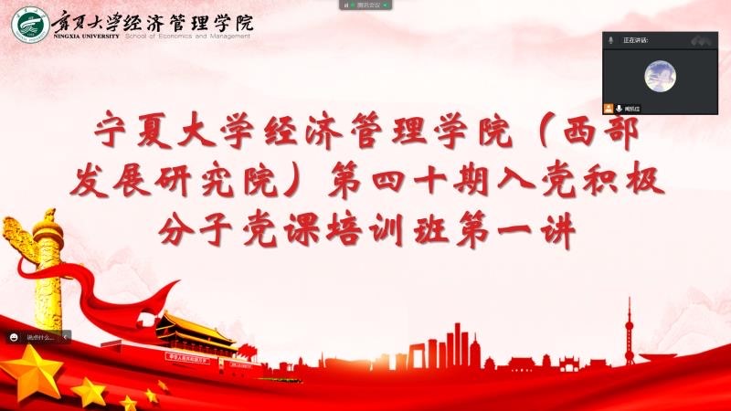 11月6日下午,亚新体育 (西部发展研究院)第四十期入党积极分子党课培训班第一讲于线上顺利举行。亚新体育 第四十期入党积极分子参加会议。本次培训以观看视频的方式进行。