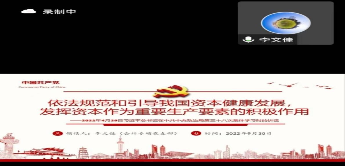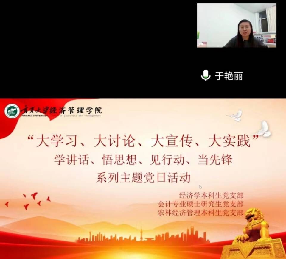 9月30日晚,亚新体育 “大学习、大讨论、大宣传、大实践;学讲话、悟思想、见行动、当先锋”系列主题党日活动在线上顺利举行。经济学本科生党支部、会计专业硕士党支部、农林经济管理本科生党支部参加本次会议。会议由杨艺帆主持。
