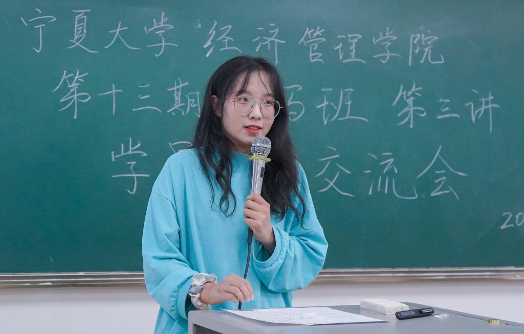 于贺兰山校区文荟楼113教室举行了第十三期青马班第三讲学员分享交流会。第十三期青马班全体成员到场学习。会议由2020级物流管理班桂琳主持。