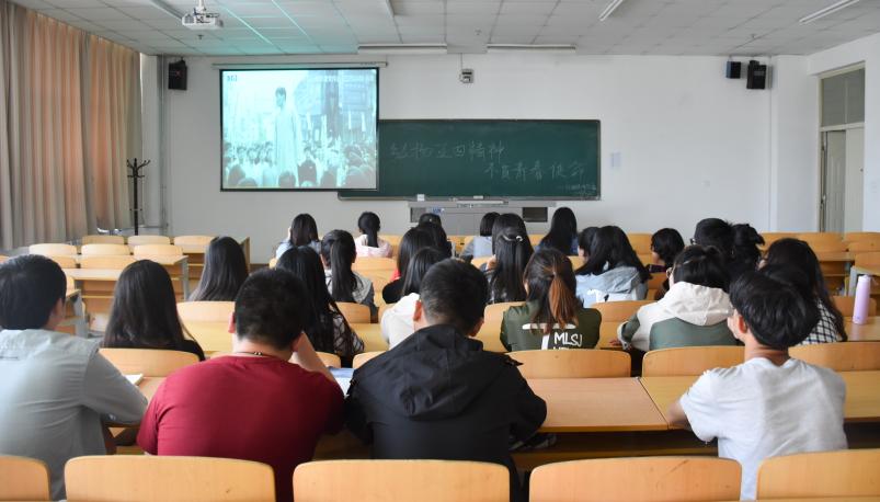 “纪念五四运动100周年大会”视频中习近平总书记的重要讲话,拉开了活动的序幕。期间,同学们不时鼓掌,向那些为拯救民族危亡、捍卫民族尊严而奉献自我的五四青年表达无限的敬意,感叹他们高尚的爱国情怀。激情洋溢的电影片段与相关图片,令同学们更加直观深入地了解了五四运动的发展过程。而后各班团支书强调了学习五四精神的重要性,详细介绍了五四精神的时代内涵和具体内容,并结合当下中美贸易战等热点时事,鼓励同学们开阔国际视野,关注国家动态,提高自身修养,努力成长为更具时代本领的新青年。