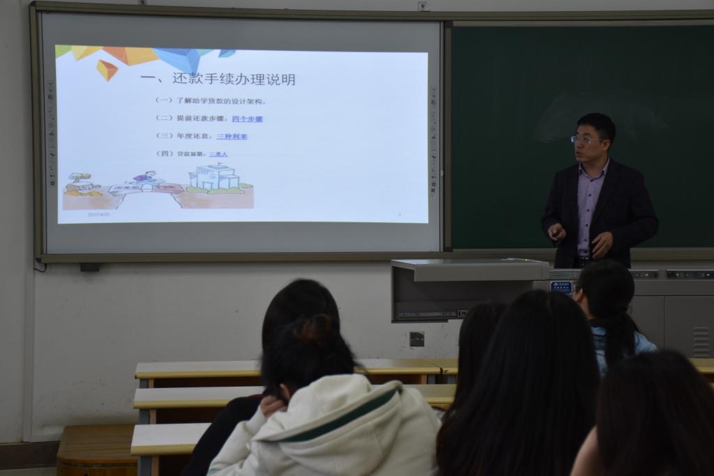 贺兰山校区文科楼405教室如期举办。本次讲座,特邀政法学院副书记崔明堂为主讲嘉宾,经管学院获得生源地信用助学贷款的全体毕业生到场参加。
