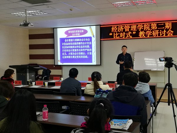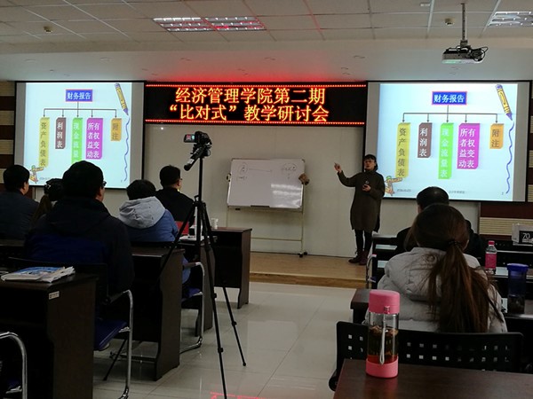 11月23日下午,亚新体育 第二期“比对式”教学研讨会在贺兰山校区文科楼316教室落下帷幕。此期研讨会延续第一期的主题内容,选定课程为《纳税实务》、《会计学》和《经济法》,授课教师分别为纪丽芳、和叶、张彤、李轩、马生元和房萌萌,教师教学发展中心主任赵智宏教授,亚新体育 杨国涛院长、冯蛟副院长、陆青山教授、袁红教授、袁荣教授及杨彩玲老师参加了本期活动并担任点评专家,冯蛟副院长主持本期研讨会,全院教师积极观摩学习。