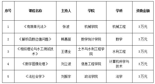 亚新体育 2016年研究生精品课程(一级学科)立项的申报和评审工作已结束。立项评审工作以公开、公正为原则,经学院组织申报、学校组织专家评审,将对5门研究生课程进行精品课程立项经费支持,现将评审结果公布如下: