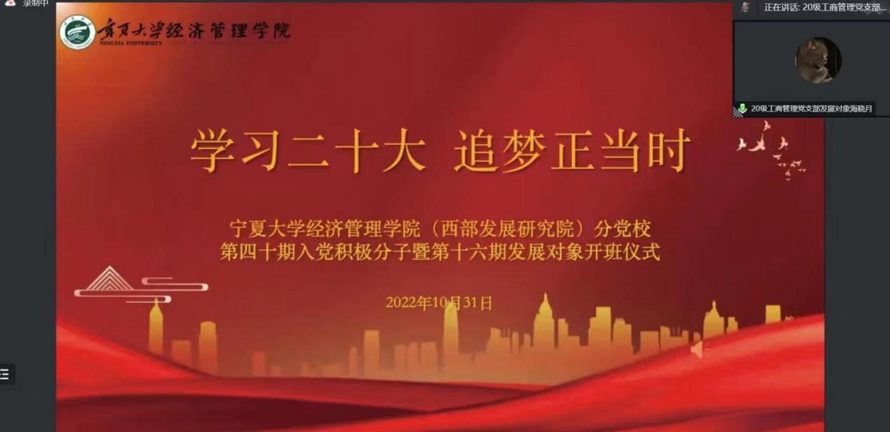学习二十大,追梦正当时——亚新体育 (西部发展研究院)分党校第四十期入党积极分子暨第十六期发展对象开班仪式顺利举行