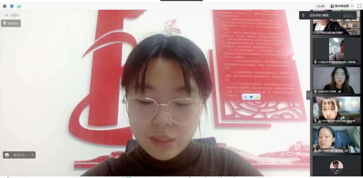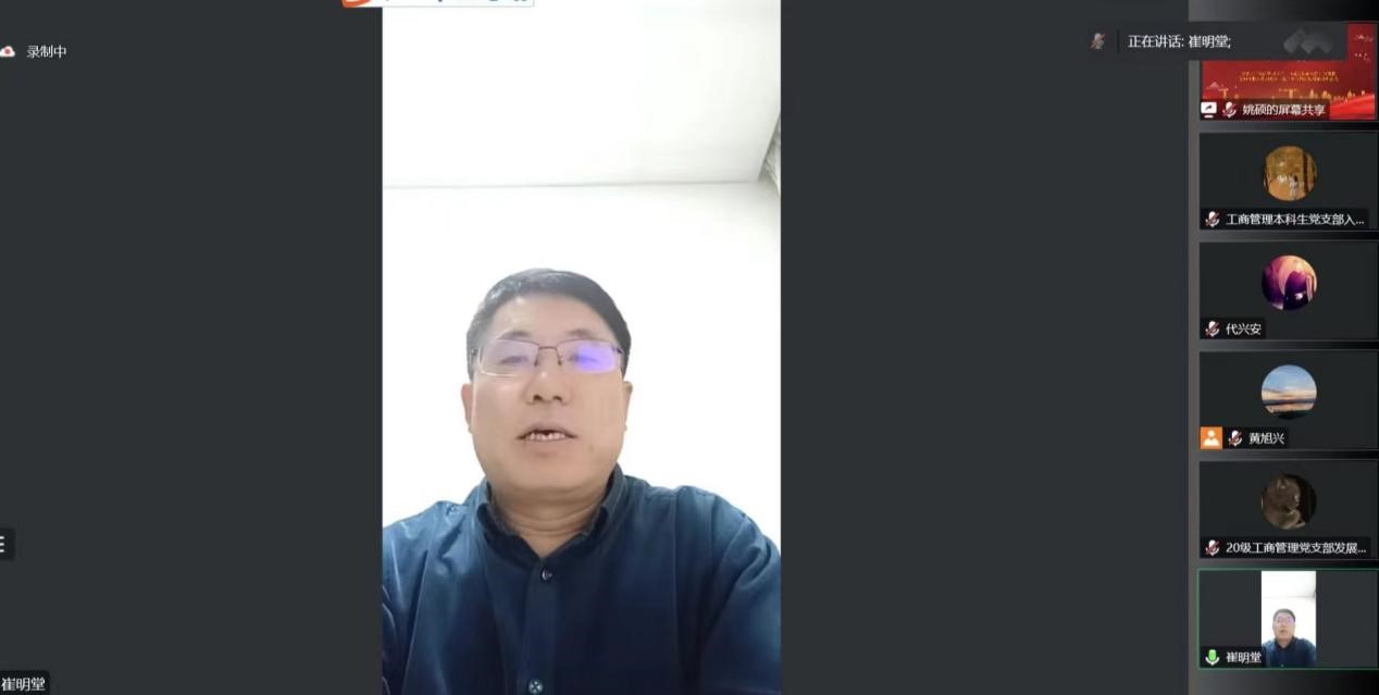 10月31日晚,亚新体育 (西部发展研究院)分党校第四十期入党积极分子暨第十六期发展对象开班仪式在线上顺利举行。亚新体育 专职组织员代兴安,亚新体育 (西部发展研究院)党委书记崔明堂,党委副书记黄旭兴,会计专业硕士研究生党支部书记李文佳,学术型研究生党支部书记郭飞,经济学本科生党支部书记马静,工商管理本科生党支部书记代乾,农林经济管理本科生党支部书记于艳丽,会计学本科生党支部书记孙文元,学院党建秘书姚硕,亚新体育 第四十期入党积极分子以及亚新体育 第十六期发展对象参加会议。会议由黄旭兴主持。